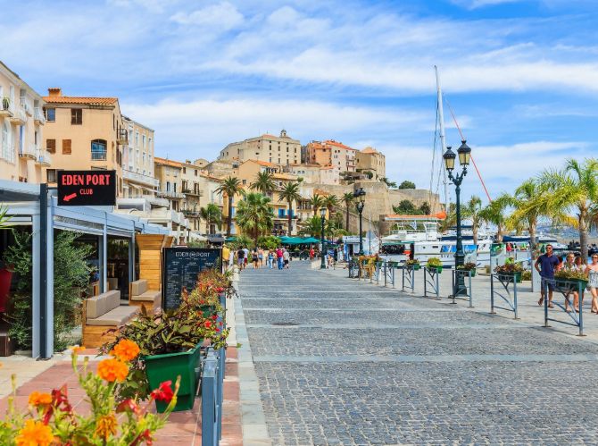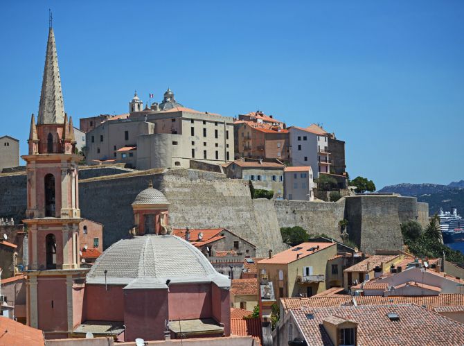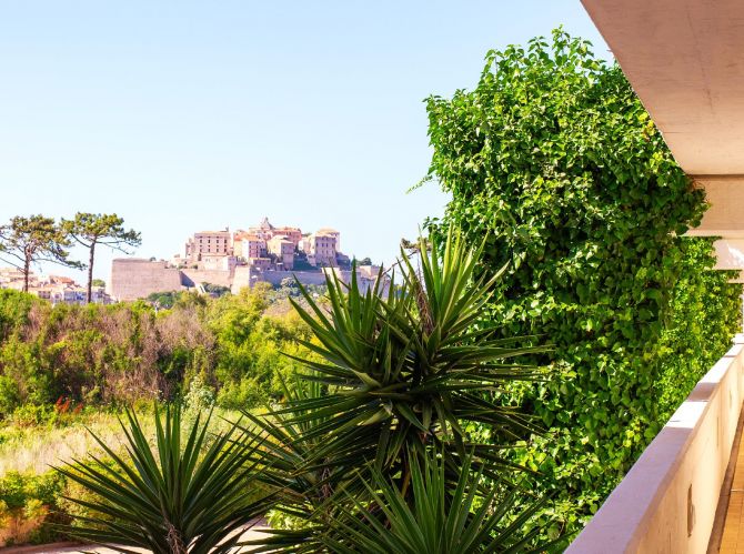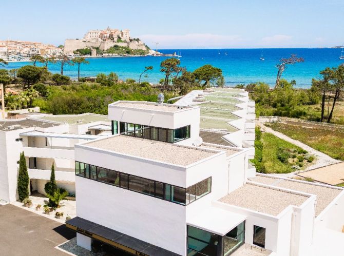 Ses 43 chambres réparties sur rez de chaussée et 2 étages, spacieuses, confortables et toutes équipées de terrasses et dressing vous transportent dans une atmosphère apaisante. Accessibles par des coursives extérieures, c'est en longeant ces passerelles pour rejoindre votre cocon qu'à chacun de vos pas, bercé d'une douce lumière, un panorama saisissant s'offre à vous : la citadelle majestueusement dressée sur son éperon rocheux, cerclée d'une mer bleu azur.