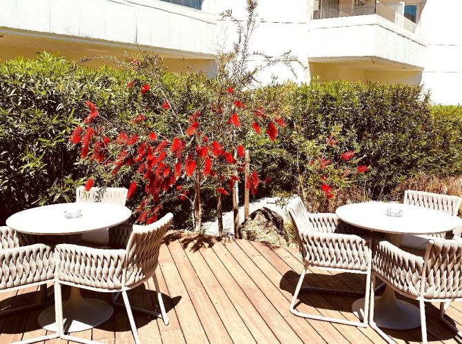 A seulement 50 mètres de la plage et tout proche des commodités de Calvi, cet établissement 3 étoiles atypique entièrement rénové vous acceuille dans un cadre exceptionnel. Dès votre arrivée, vous serez séduit par le lobby et son sublime jeu de matière aux douces tonalités. Objets design de créateurs et matériaux nobles lui confèrent un espace chaleureux en parfaite harmonie avec son architecture anguleuse et moderne, maculée de blanc.
