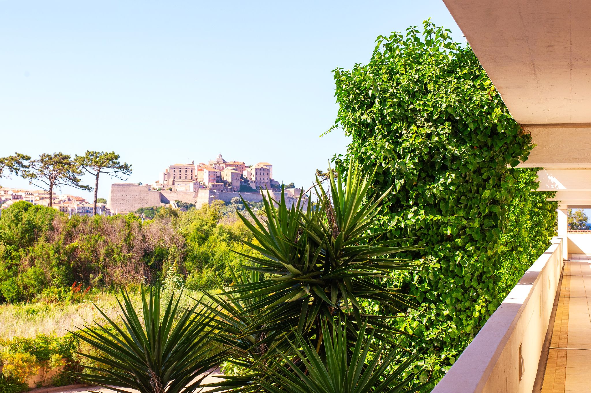 Ses 43 chambres réparties sur rez de chaussée et 2 étages, spacieuses, confortables et toutes équipées de terrasses et dressing vous transportent dans une atmosphère apaisante. Accessibles par des coursives extérieures, c'est en longeant ces passerelles pour rejoindre votre cocon qu'à chacun de vos pas, bercé d'une douce lumière, un panorama saisissant s'offre à vous : la citadelle majestueusement dressée sur son éperon rocheux, cerclée d'une mer bleu azur.
