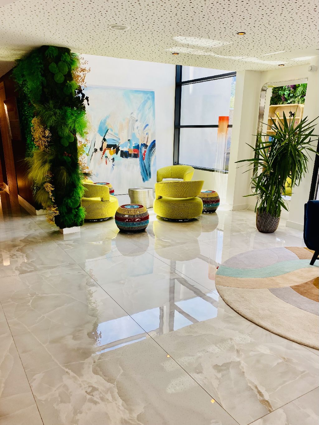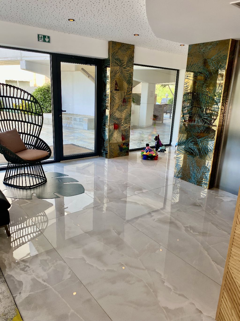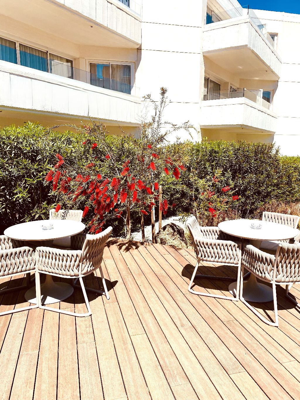 A seulement 50 mètres de la plage et tout proche des commodités de Calvi, cet établissement 3 étoiles atypique entièrement rénové vous acceuille dans un cadre exceptionnel. Dès votre arrivée, vous serez séduit par le lobby et son sublime jeu de matière aux douces tonalités. Objets design de créateurs et matériaux nobles lui confèrent un espace chaleureux en parfaite harmonie avec son architecture anguleuse et moderne, maculée de blanc.